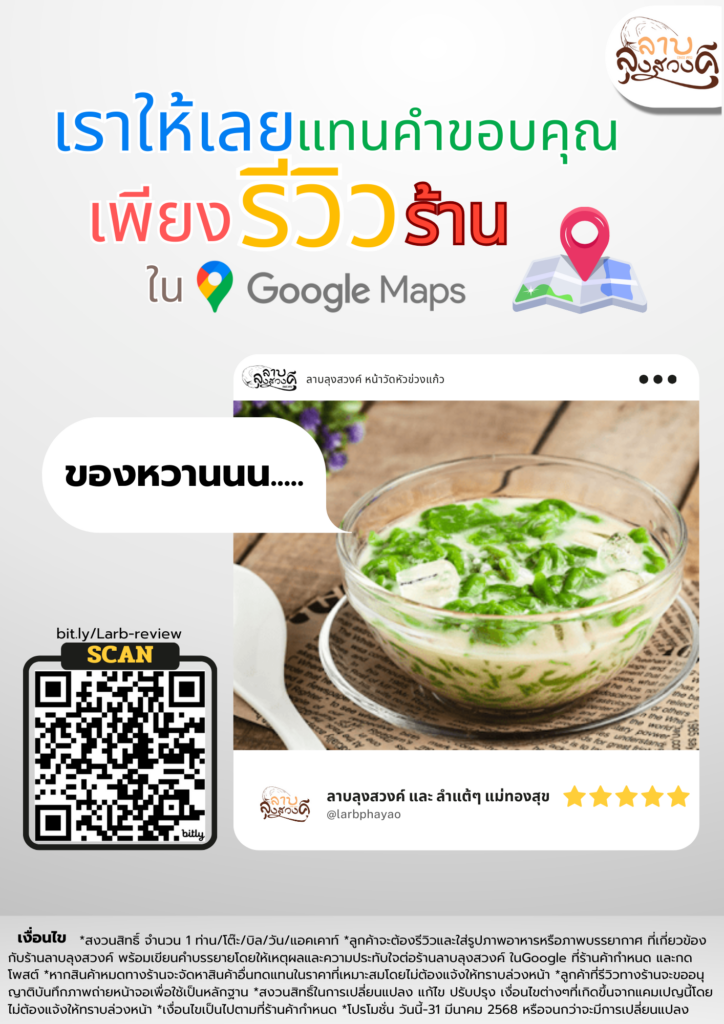 เมื่อลูกค้าที่มาใช้บริการและรีวิว “ลาบลุงสวงค์” บน Google รับฟรี เมนู ของหวาน 1 ถ้วย